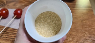 이게 중요한 건데 설탕이 식기 전에 방울토마토 꼬지에 설탕을 냅다 묻혀줘야 한다.